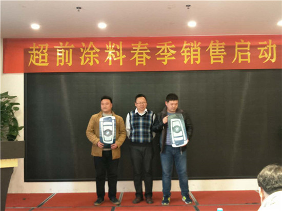 在過去的一年里,超前涂料里的每一位業(yè)務(wù)家人,就像一只只雄鷹,搏擊風(fēng)雨,翱翔蒼穹,創(chuàng)造佳績,跨越了一座座難以逾越的巔峰,在時間的長河里留下一個個美麗的剪影。在公司閻總的關(guān)心和領(lǐng)導(dǎo)下,在各部門的大力支持下,通過全體業(yè)務(wù)家人的共同努力,公司業(yè)務(wù)規(guī)模獲得了輝煌的發(fā)展。今天,在這啟動大會上閻運鋒閻總親自給四位優(yōu)秀業(yè)務(wù)家人送出了四輛寶馬作為獎勵。